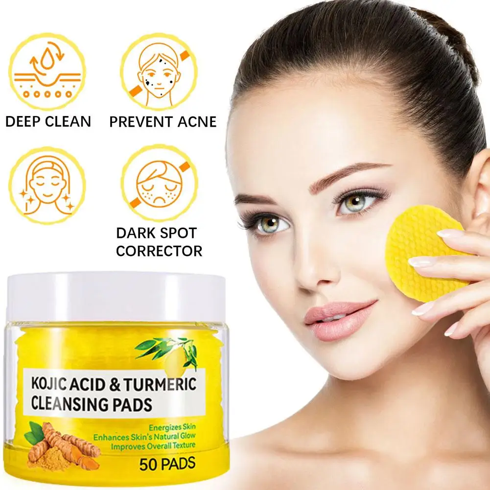 50 Pads Turmeric Kojic Acid Cleansing Pads Exfoliating Pads Facial Sponges For Daily Facial Cleansing Skin Care